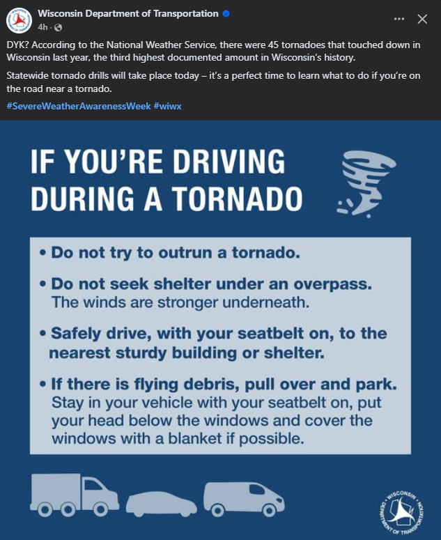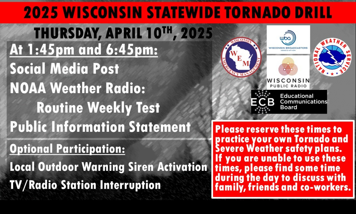 Wisconsin's Statewide Tornado Drill is this afternoon! Take some time to review and update your plan,