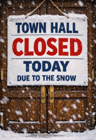 Town Hall will be CLOSED today 3/16/2026 due to the weather. Be safe out there neighbors.