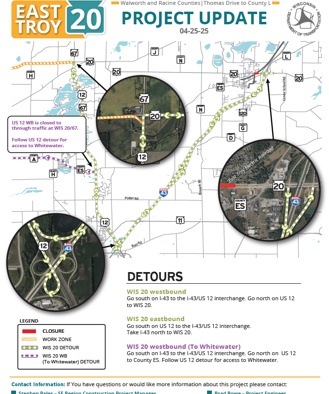 Information about the US 12 project between Whitewater and WIS 20/WIS 67: